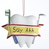 Dentist and hygienist inspired tooth ornament features a toothbrush and dental tool with a banner that reads "Say Ahhh..."