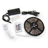 Included in the kit: - 16.4 feet RGB LED waterproof flexible strip - Power supply - Wireless remote controller - Wireless receiver - End caps and mounting hardware This color changing LED lighting strip kit has everything you need to add color and light to any room, even outside since it is fully protected in a waterproof casing. Easily change colors and modes via wireless remote control. Enjoy vivid red, greens, and blues, and super bright white. Mounting the strip could not be easier with the per-applied 3M double sided tape. The strip are cuttable in between sections (every third LED) to ensure a perfect fit.Product SpecificationController: - Input Voltage: 12V - Output Voltage: 12V 2A Each color max.Wall Mount Power Supply: - Input Voltage: 100 - 240V ~50-60Hz - Output Voltage: 12V 4A Each color max. - Operating Temperature: -20 - 60 degrees CLED Type:RGB SMD5050Input Voltage:Into Power Supply 100-240 VWatt:36WLED Quantity:150 SMD LEDsAvailable Colors:Color ChangingWeight:2lbs.Dimensions:16.4' Length